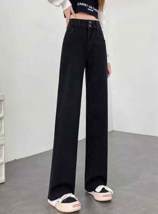 秋季新品高腰显瘦网红爆款直筒阔腿拖地牛仔长裤,独立包装带腰卡,码数XS-S...