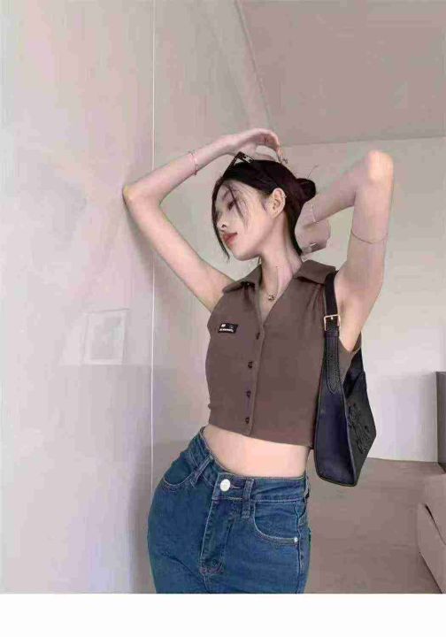 美式复古靓妹背心317件5.9Polo领,胸口小标,两种面料...