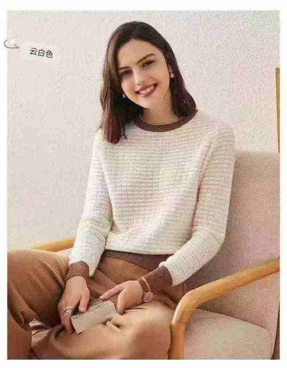 140多件新款秋冬撞色圆领方块格纹毛衣打底针织衫,均码!单款四色,高弹力...