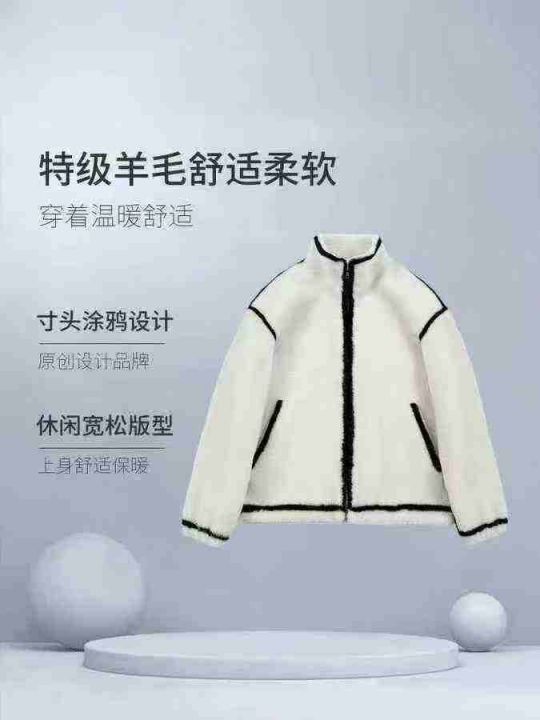 50件秋冬男女同款立领宽松冬季夹克羊羔毛皮毛一体羊羔绒外套!尺码S-L,大版...