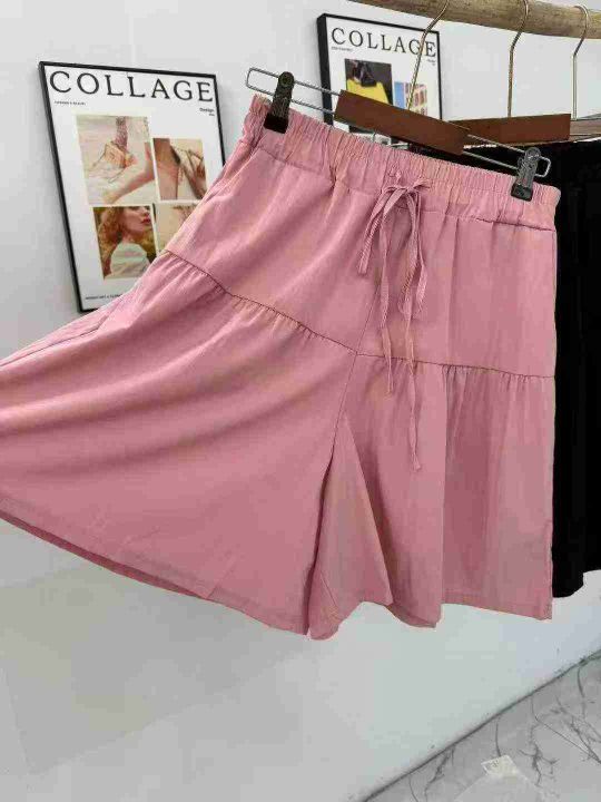 慵懒风裙裤休闲短裤女夏季新款高腰显瘦阔腿裤系带五分裤,数量670件,码数M-5XL,黑色多,独立包装,货品干净漂亮,