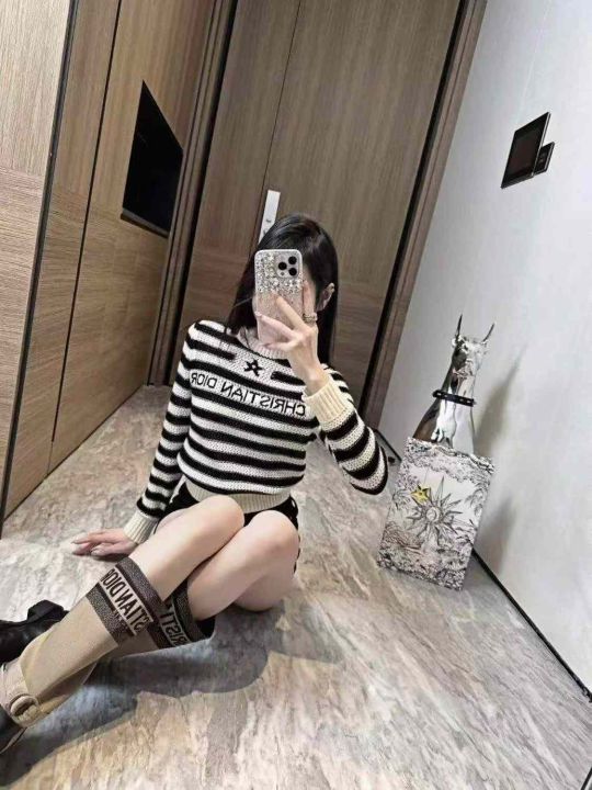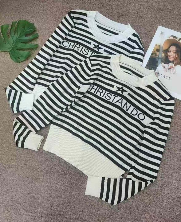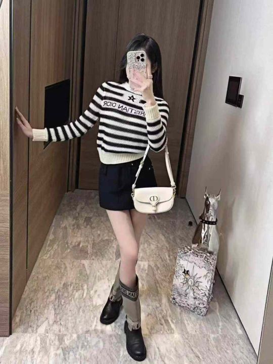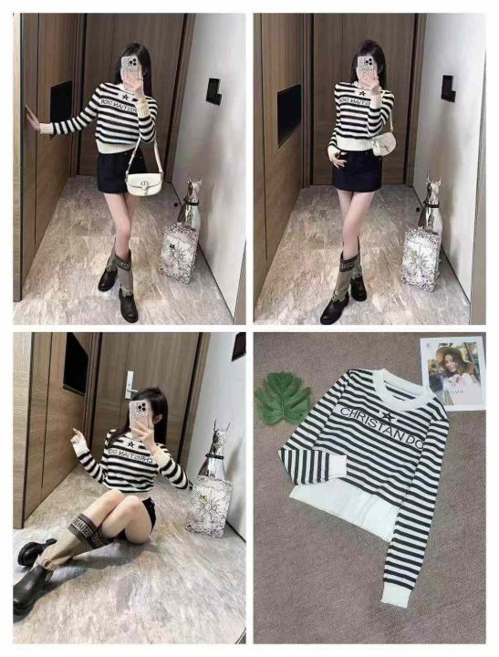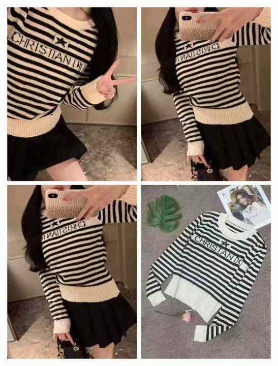春秋季新款条纹针织毛衣时尚百搭长袖减龄气质针织衫女上衣,品质好,独立包装,均码,930件,清6.9,分➕1