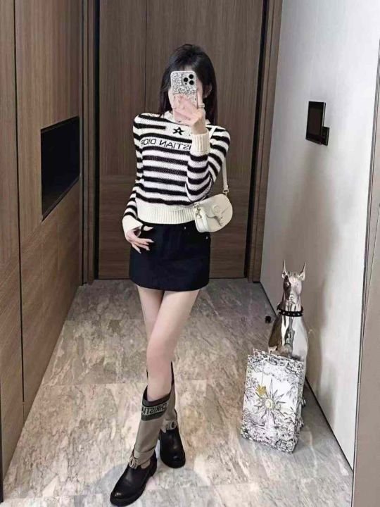 春秋季新款条纹针织毛衣时尚百搭长袖减龄气质针织衫女...