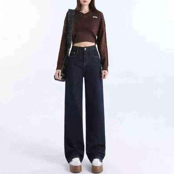 秋冬新款高品质女装复古蓝直筒阔腿牛仔长裤,独立包装带吊牌带防伪扣,码数...