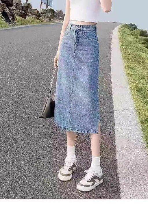 春装新款女时尚通勤中长款水洗开叉牛仔裙158件,码数:S-5XL码,单款单色,品质好,内包边包条,独立包装带吊牌,全清7.8元秒