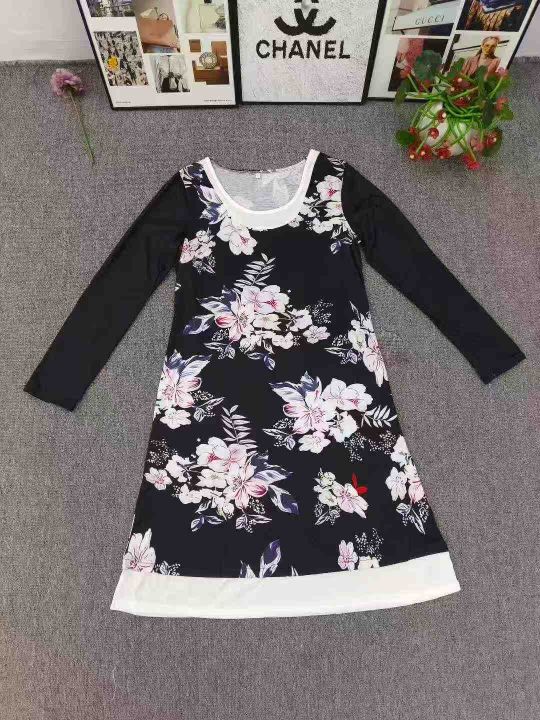 欧美外贸款垂坠质感印花中长款长袖T恤裙衣 数量160件左右 尺码S--2XL 单款两个色印花不同 独立包装 模特图类似供参考 货品干净整洁