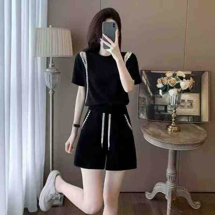2025夏季新款高级感时尚休闲运动套装女设计感短袖短裤两件套,数量260套,码数M-3XL,黑色为主,独立拉链包装,货品干净漂亮,