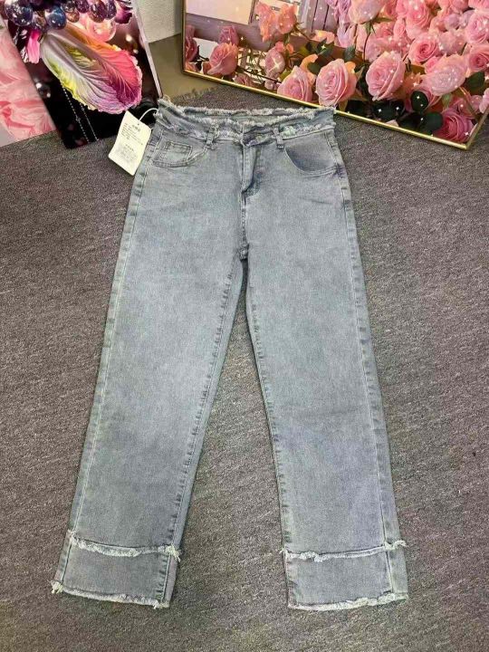 复古蓝窄版牛仔裤女春夏新款高腰显瘦设计感毛边九分直筒烟管裤子,浅蓝色为主,整款2色,独立包装,有弹力,货品干净,S-2XL码,830条左右,8.8清,分货加1