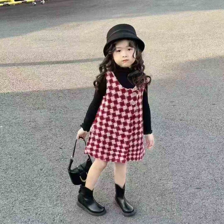 [月亮]:潮童韩版毛呢马甲连衣裙