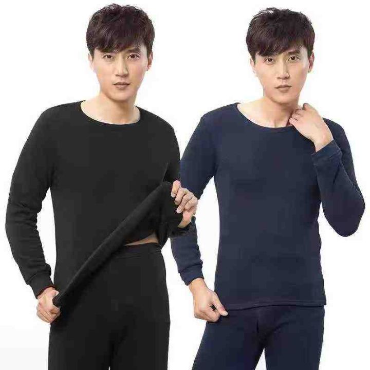 男士保暖内衣德绒圆领秋冬季加厚加绒秋衣秋裤套装,独...