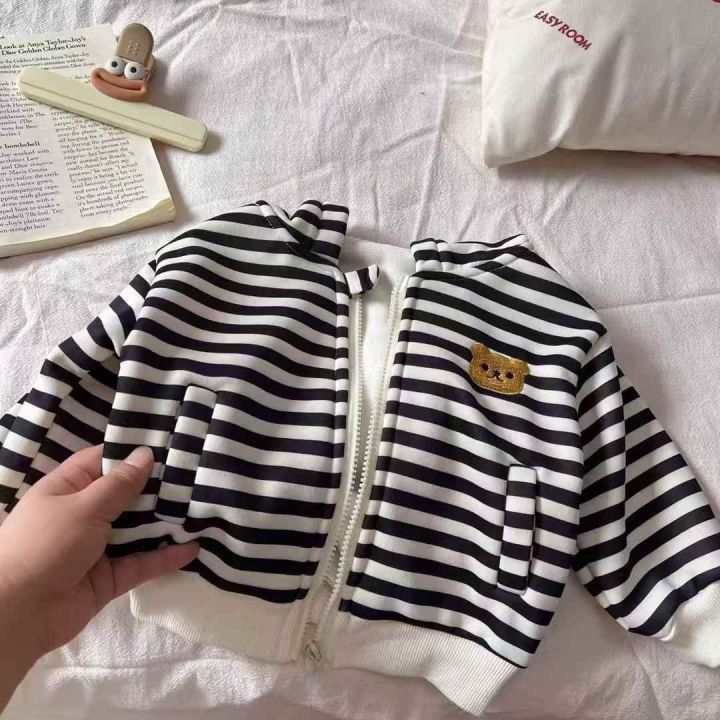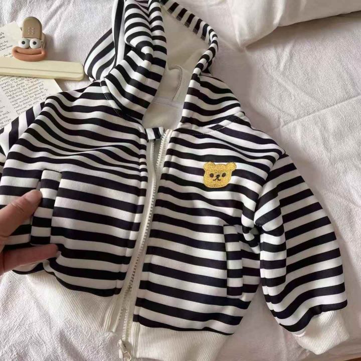 ⭐性价比 网店货⭐百搭条纹一体奥粒绒连帽外套80-120...