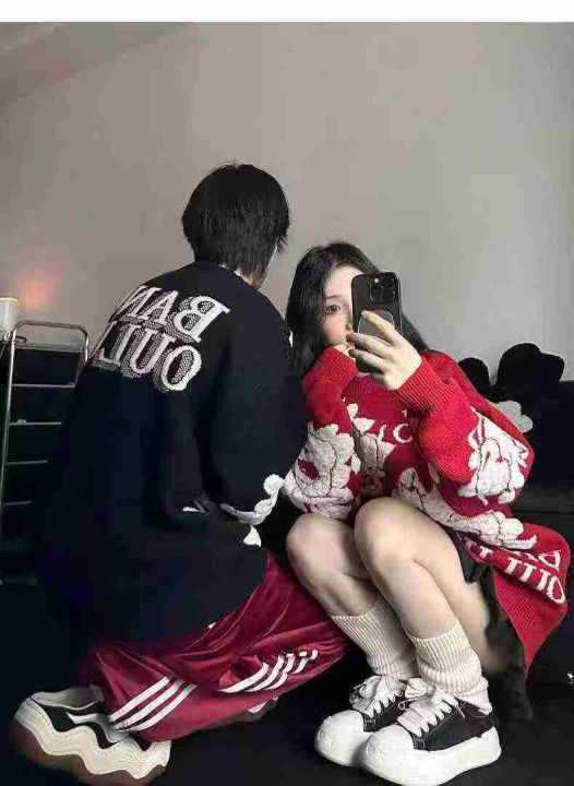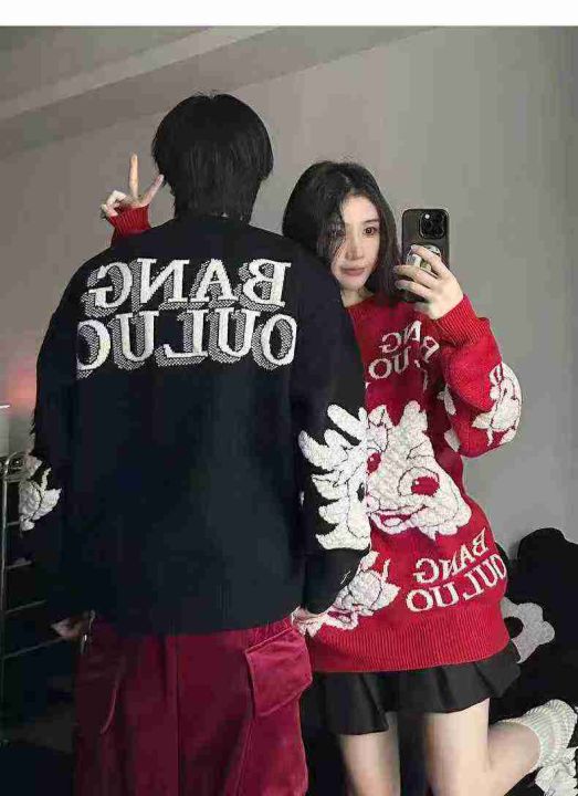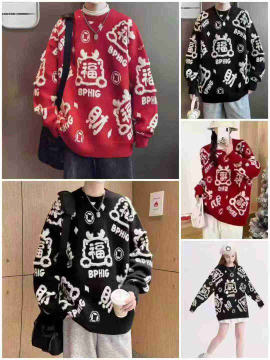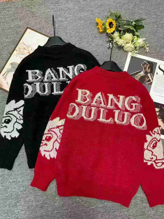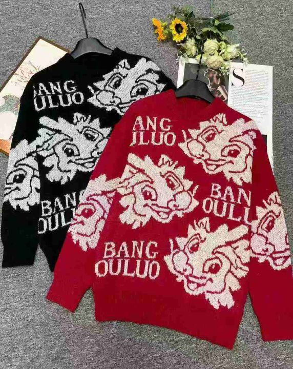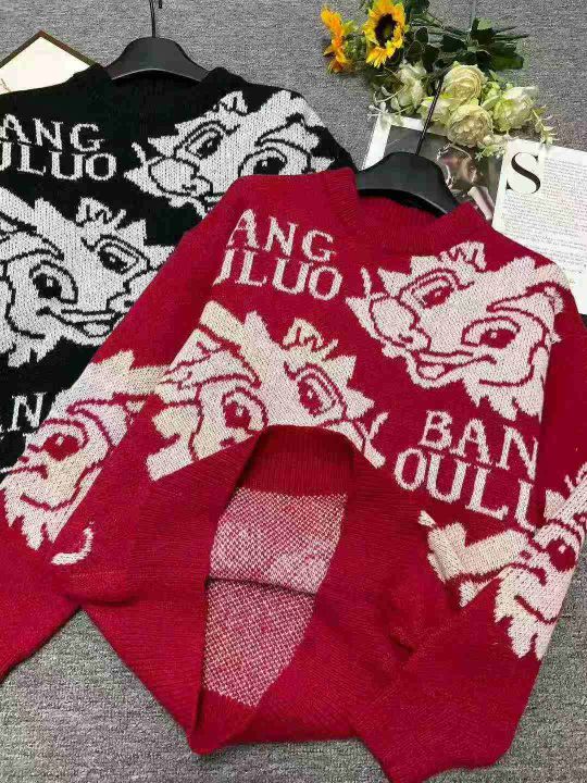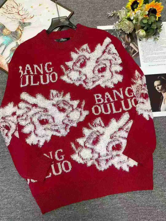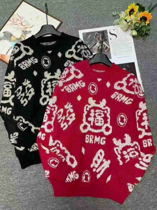 秋冬新款国潮提花宽松慵懒风圆领套头毛衣,独立包装,...