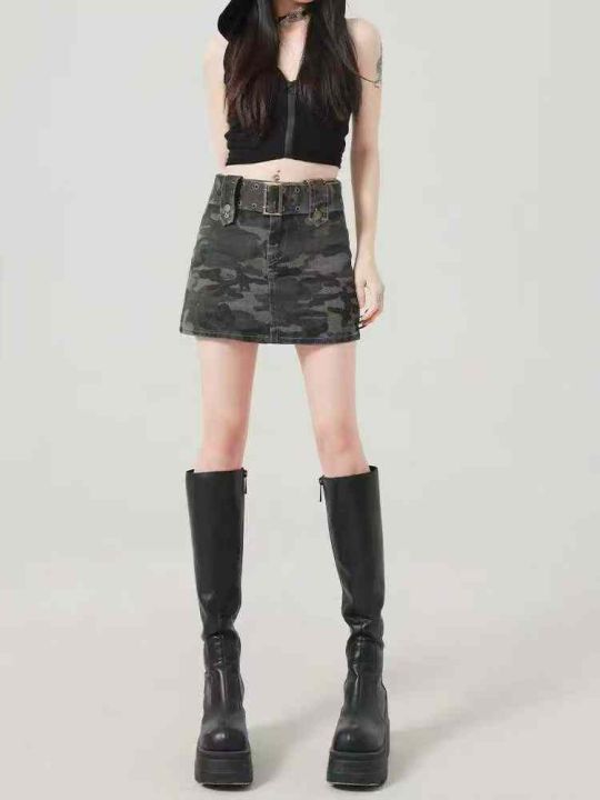 夏季新款美式复古大码胖妹妹洗水棉牛仔半身裙,独立包...