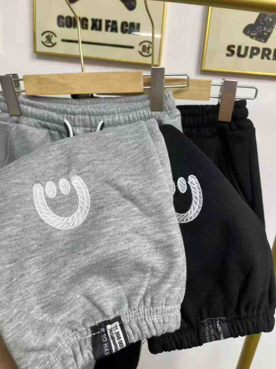 天猫在售款700件高品质中大童男女同款加绒加厚棉质刺绣休闲卫裤(有加绒有不加绒,加绒都是不到绒)单款两色,码数120-170,独立包装带吊牌