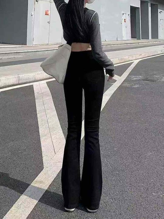 ☕️高弹力黑色微喇叭牛仔裤女显瘦显高弹力高腰拖地马...