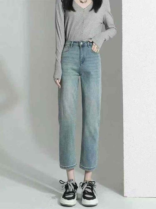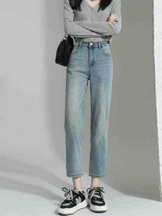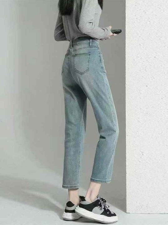 ☕️高弹力新款牛仔裤女老爹裤高腰显瘦宽松烟管裤127...