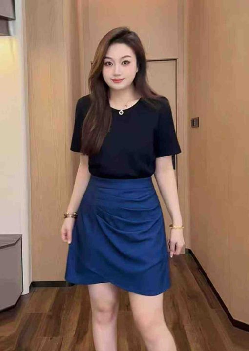 夏季新款胖妹妹弹力设计款牛仔半身裙+宽松纯棉大版T桖...