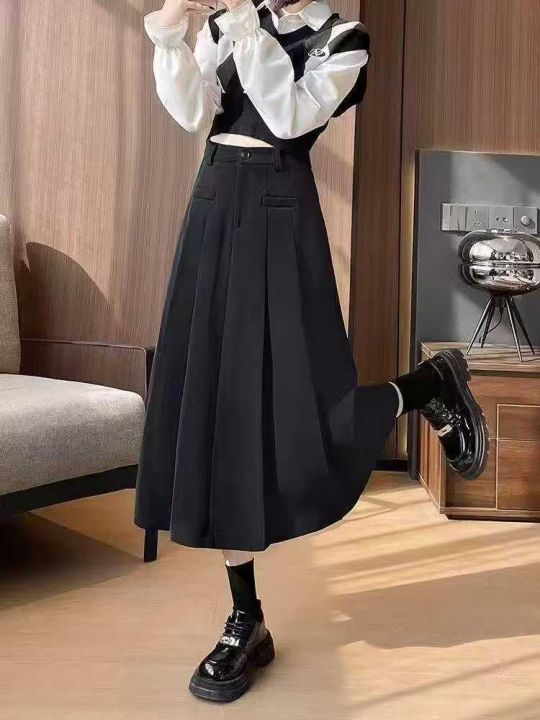 南城高品质西装半身裙☕️整款450条全清11.8元,分货12.8元,码数S M,单款黑色,独立包装。西装百褶半身裙女高腰垂感开叉A字裙中长款遮胯大摆裙
