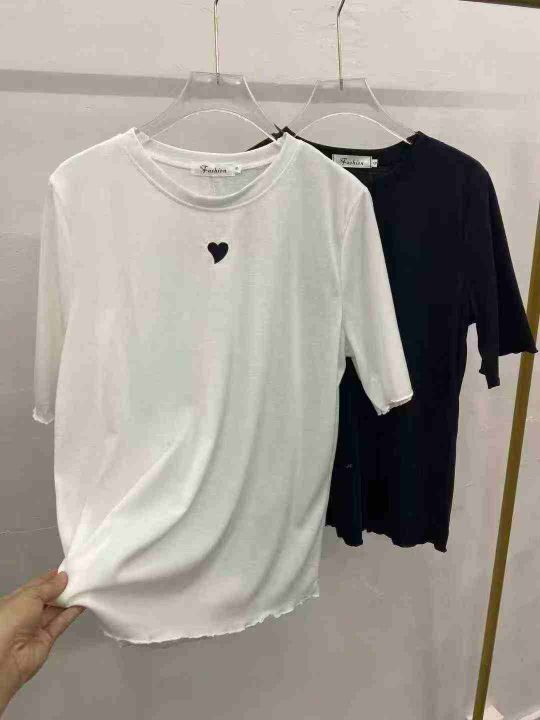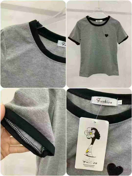 308件爱心刺绣圆领短袖上衣。两个整款,其中一款木耳边设计,面料柔软舒适。码数1-7,独立包装带吊牌,全清3.5