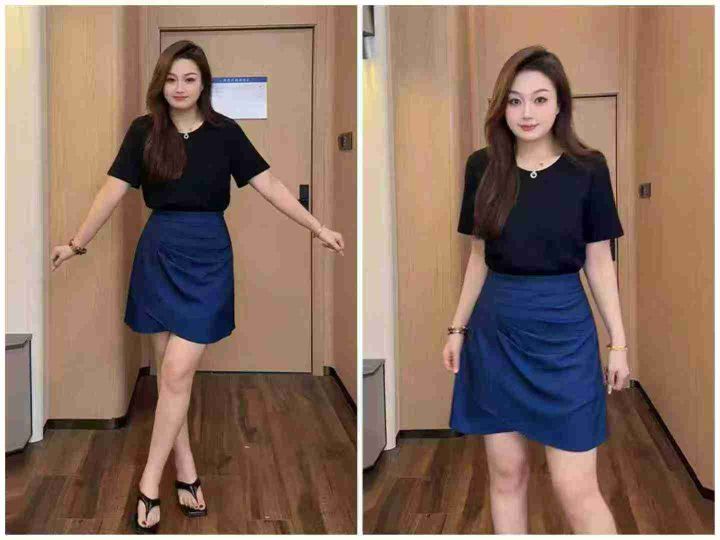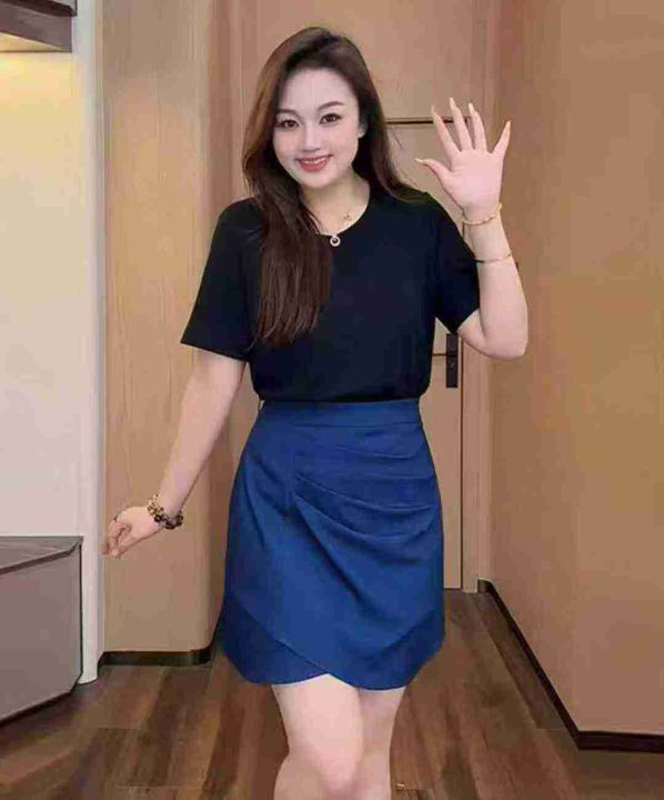 夏季新款胖妹妹弹力设计款牛仔半身裙+宽松纯棉大版T桖...