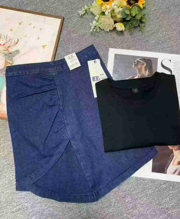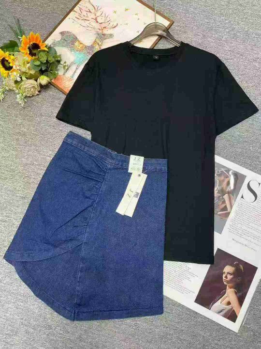 夏季新款胖妹妹弹力设计款牛仔半身裙+宽松纯棉大版T桖2件套,独立包装带吊牌,码数S--3XL码,240套左右,全清9.9元超低价秒杀!分货加一!