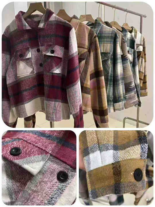160多件欧美风复古格纹休闲百搭毛呢外套 ,尺码S~2xL...