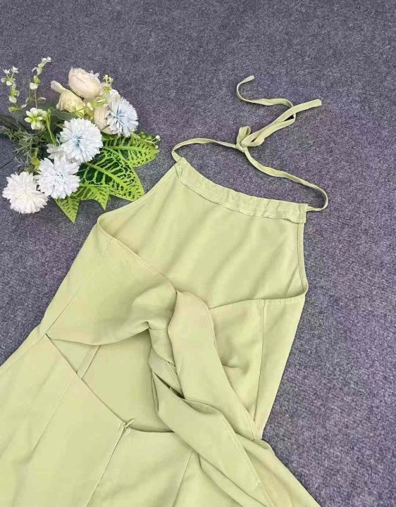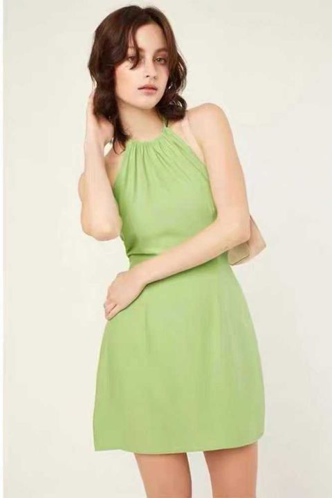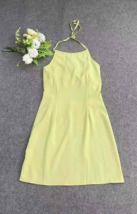 94件性感露背挂脖绑带纯色连衣裙。小整款,面料柔顺舒...