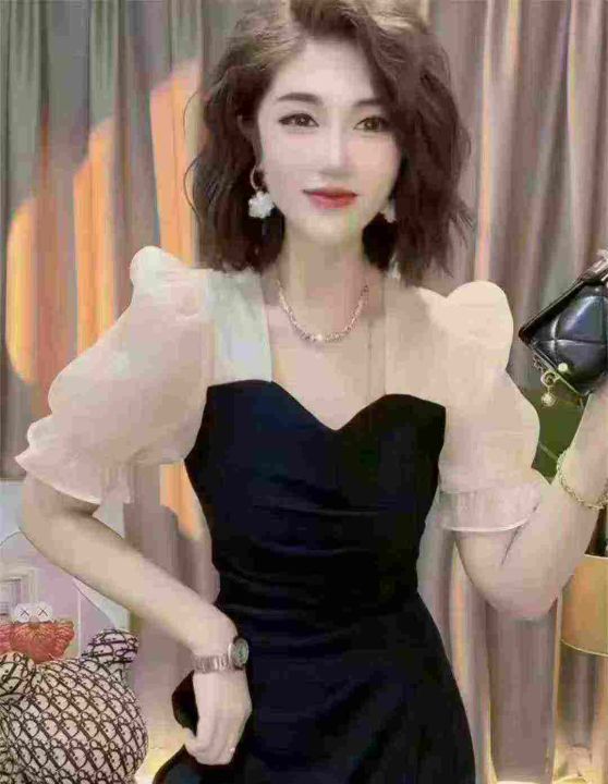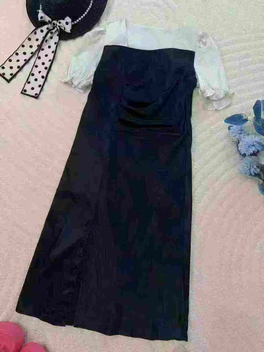 法式侧开叉黑色连衣裙夏季新款轻熟风设计感气质小裙子