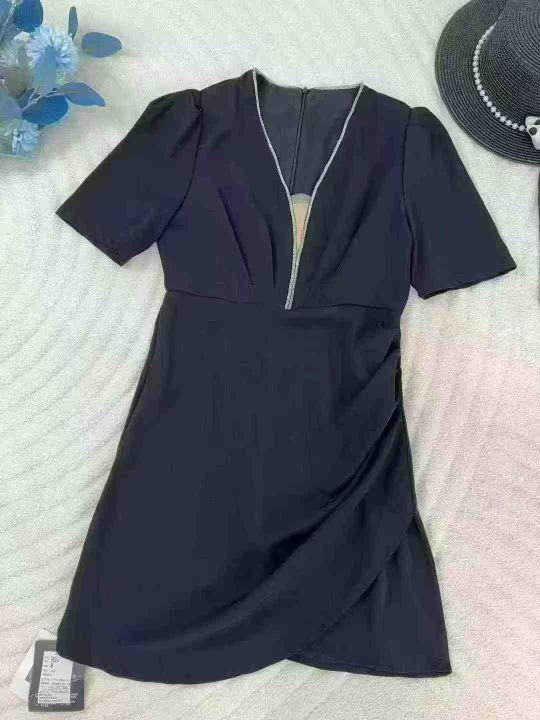 法式赫本风高级感小黑裙V领修身显瘦包臀裙2025夏季新...