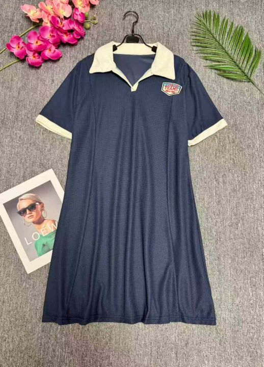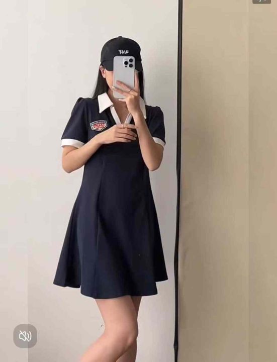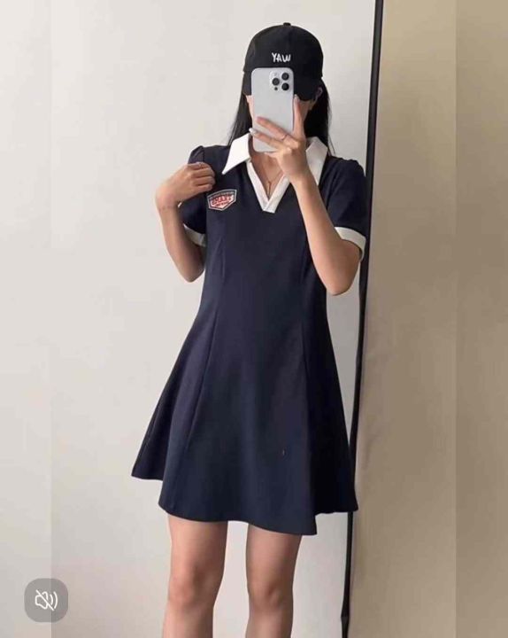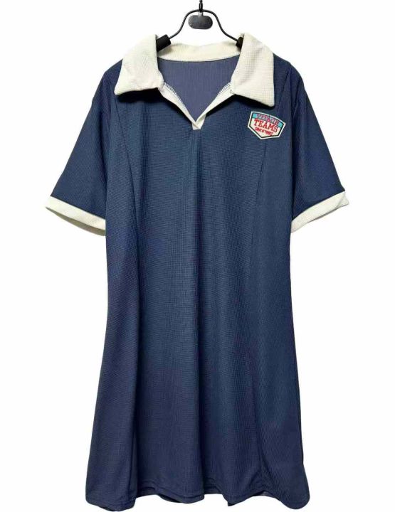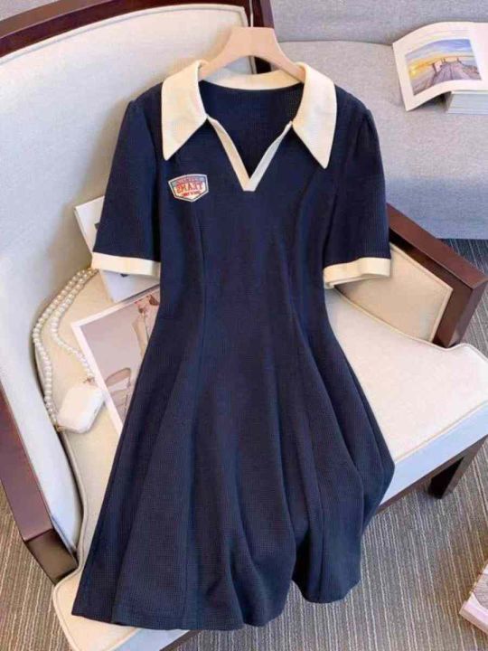 ⭐⭐160件美式华夫格Polo领高腰字母刺绣甜辣收腰A字连衣裙,码数S到2XL码,有独立包装,全清5.8元!
