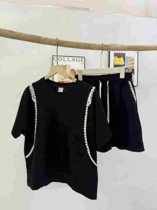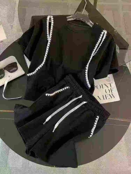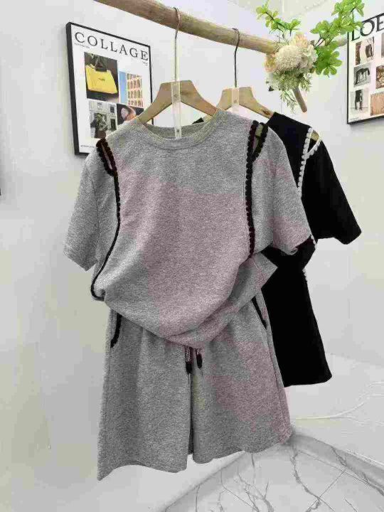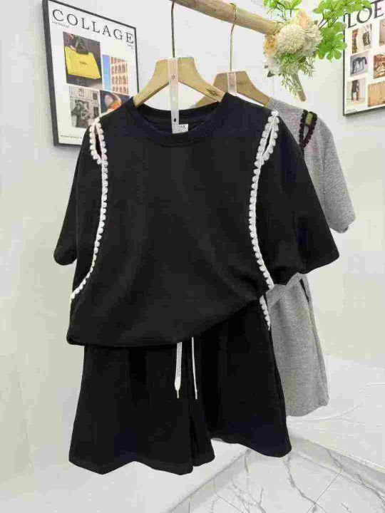 2025夏季新款高级感时尚休闲运动套装女设计感短袖短裤两件套,数量260套,码数M-3XL,黑色为主,独立拉链包装,货品干净漂亮,