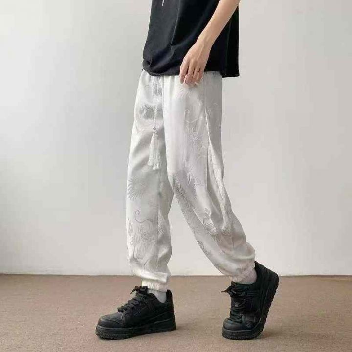 全清7.5分货+1男士夏季新款中国风龙纹新中式冰丝束脚抽绳休闲裤,独立包装...