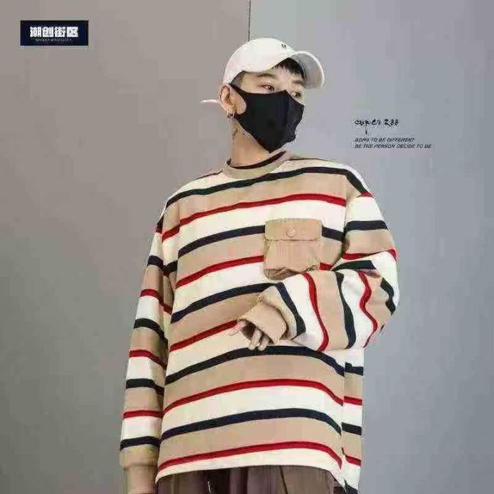 195件,美式潮牌重磅小口袋条纹圆领卫衣日常休闲外套男,独立拉链包装,码...