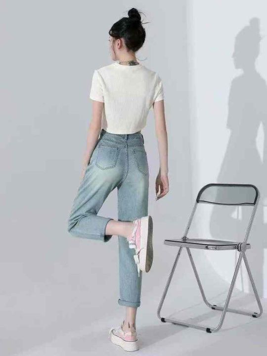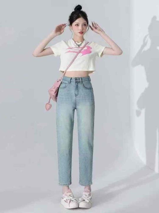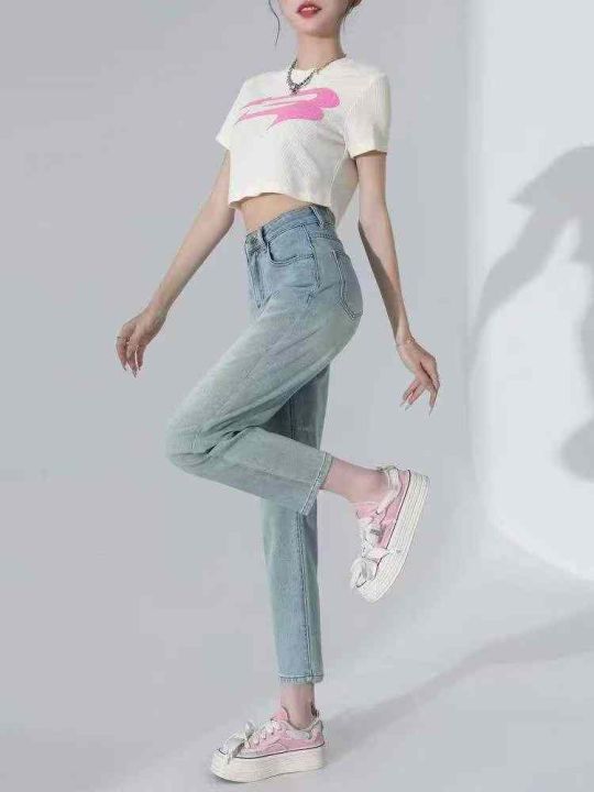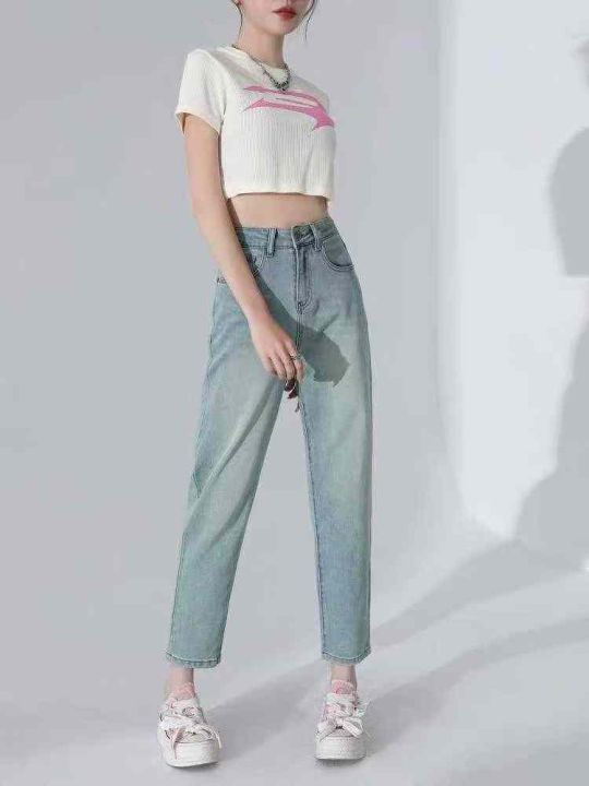 ☕️高弹力老爹牛仔裤春夏季新款哈伦裤高腰薄款萝卜老...