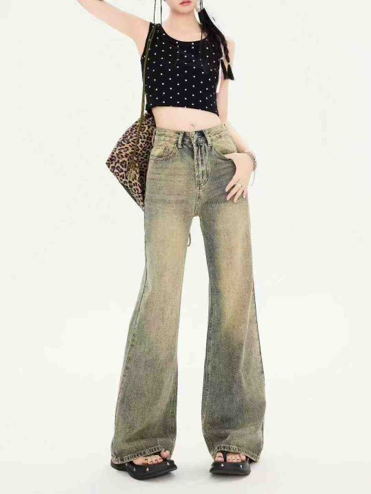 高品质☕️美式复古水洗做旧宽松版阔腿裤百搭新款宽松...