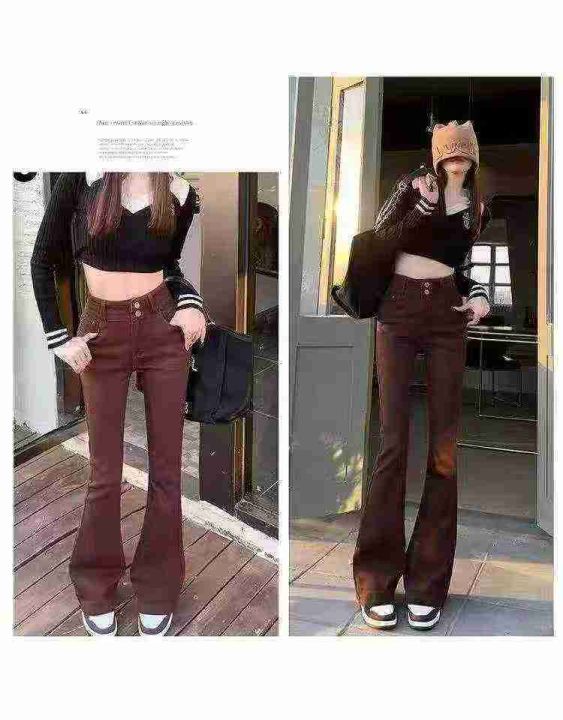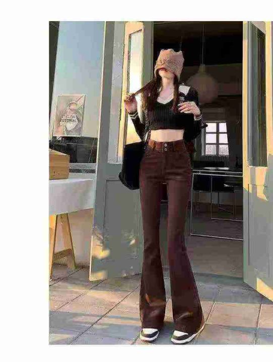 ☕️咖色高弹力喇叭牛仔裤女高腰显瘦弹力修身马蹄阔腿...