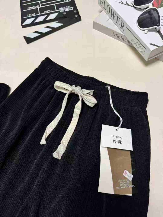 品牌高端女裤系列~黑色灯芯绒裤,两个小整款,一个腰部抽绳款(331条),一个阔腿开叉款(135条),两个款总数量466条,春秋款,码数M-XL,独立包装吊牌,分货➕1
