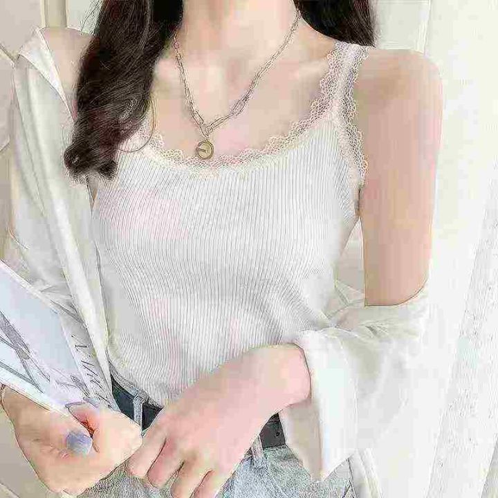 4.9清秋季新款大码西装内搭美背蕾丝边打底外穿弹力吊...