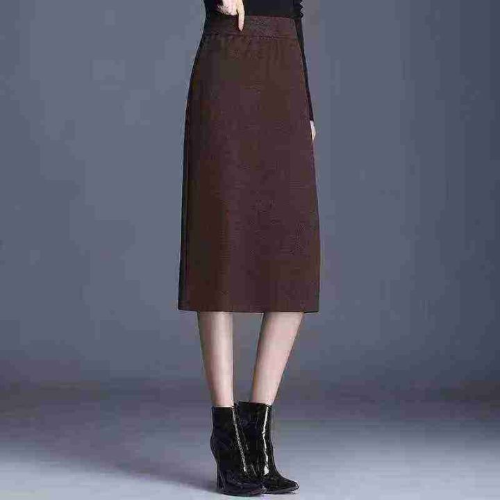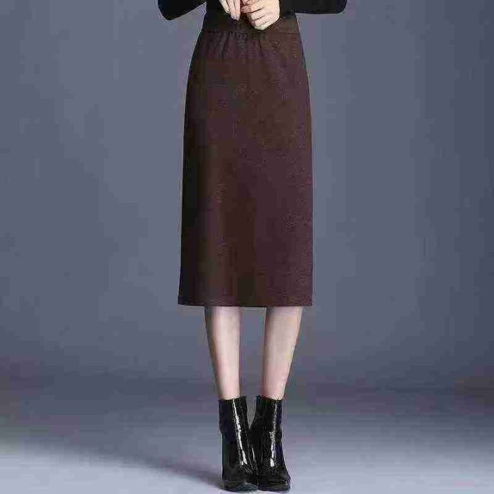秋冬新款女装a字高腰显瘦松紧腰中长款包臀半身裙,独...