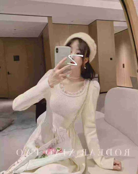 秋冬新款温柔风女神范减龄洋气设计感小众中长款针织连...