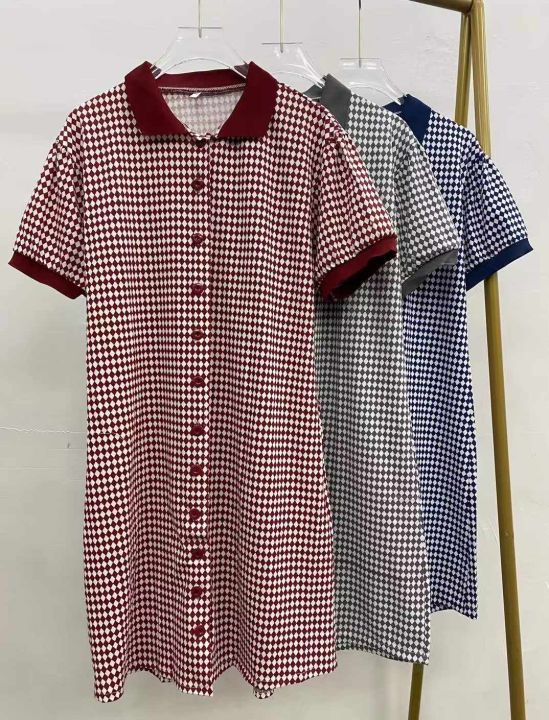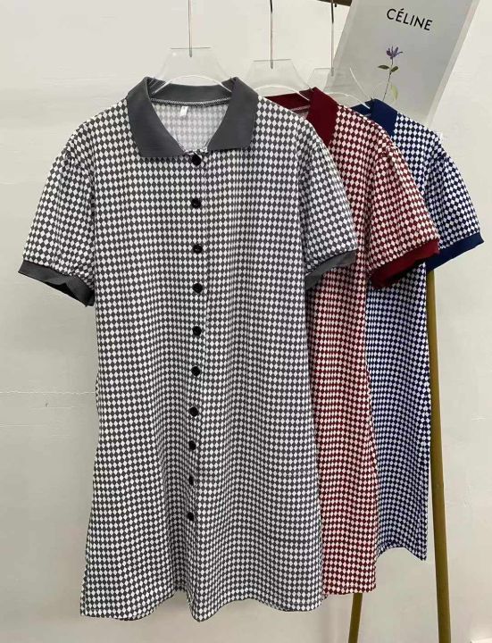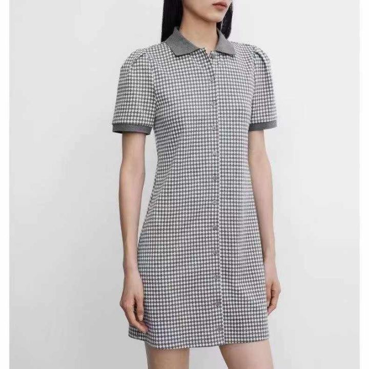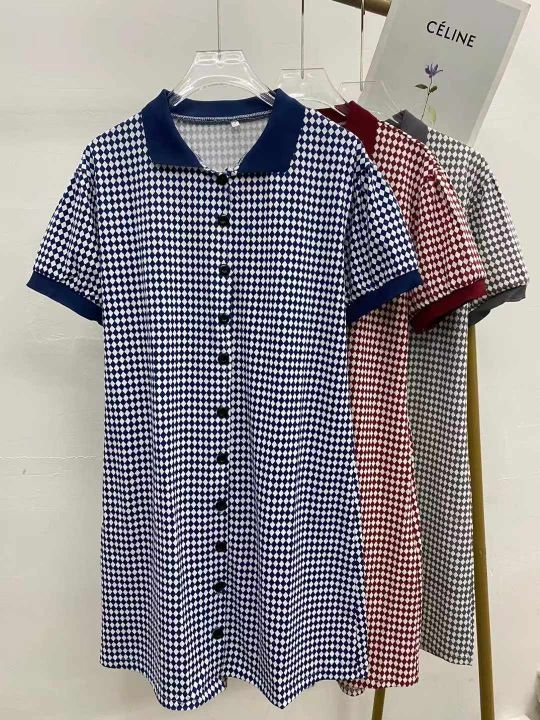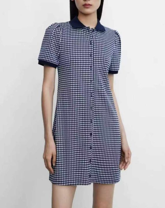 棉质棋盘格连衣裙57件7.9,Polo领,纽扣设计,有弹力...