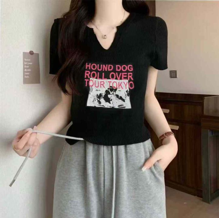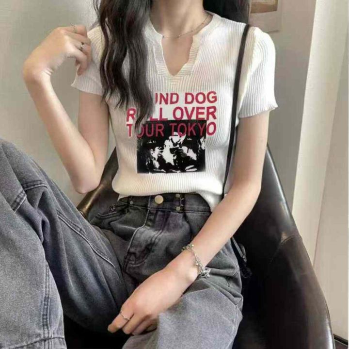 夏季新款性感V领不规则交叉辣妹设计感小众洋气针织短袖,独立包装,均码面...