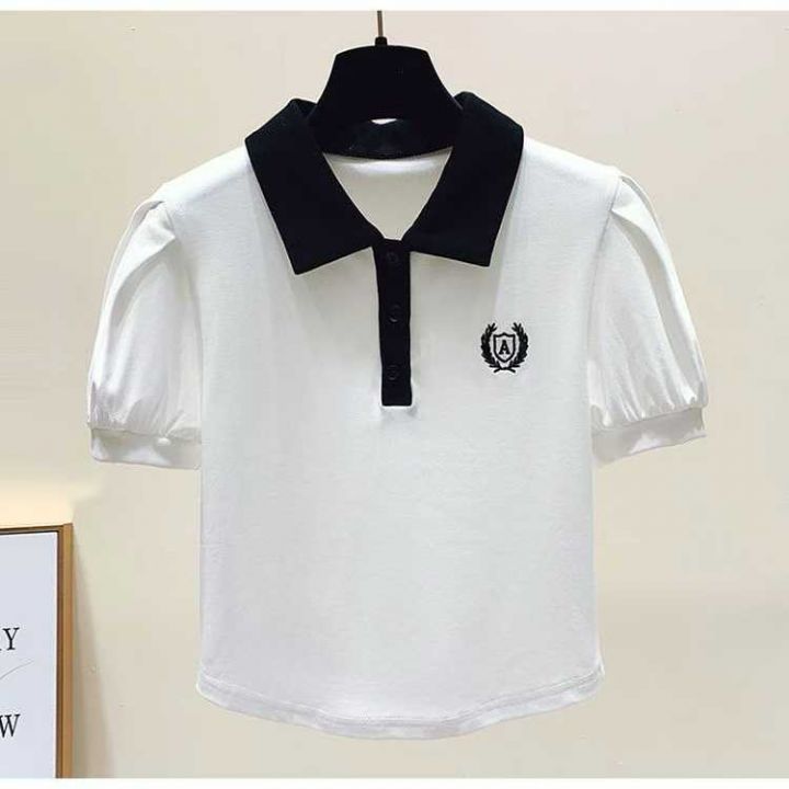 40件,撞色polo夏季2025T恤短袖新款设计感小众刺绣短款上衣,独立包装,全...