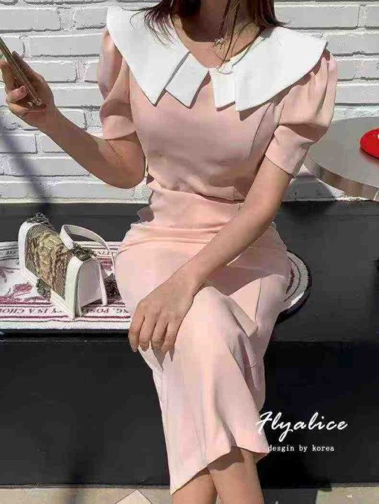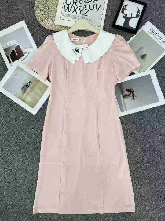 ☕️法式温柔风粉色收腰显瘦短袖连衣裙女夏季新款气质收腰显瘦中长裙210件全清13.8元,码数S到XL,全部带内衬,高品质精品独立包装。