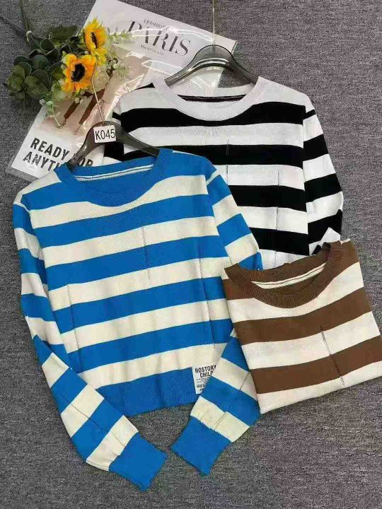 早秋新款设计款撞色条纹圆领长袖针织衫,独立包装,2款多色(一个有标一个没有),均码面料柔软舒适,黑色多一点,2300件,全清5.9元超低价秒杀!分货加一!