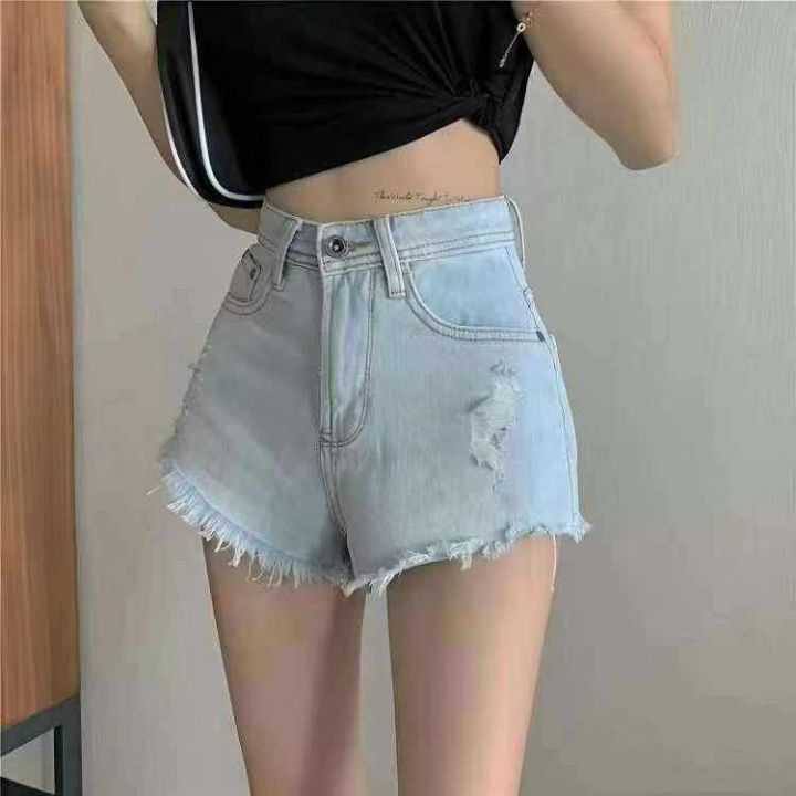 辣妹牛仔短裤☕️460条全清8.8元,码数26-30,单款2色,正品独立包装,破洞毛边超短热裤新款夏季高腰显瘦a字裤