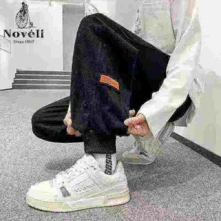 790条,加绒排扣裤子男秋冬韩版个性贴标百搭束脚卫裤潮流加厚休闲运动裤,...