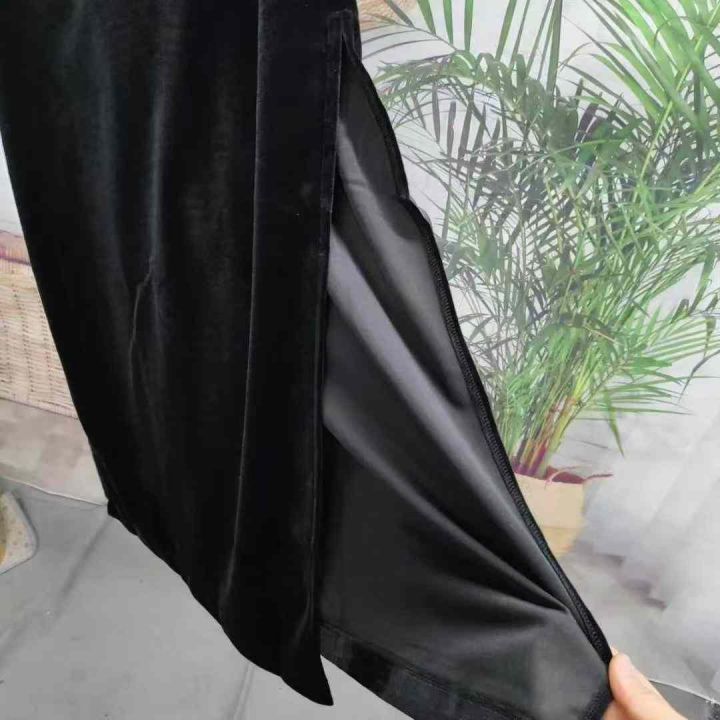 3.8元秒杀[玫瑰][玫瑰] 金丝绒黑色新款高腰两边开叉复古显瘦长款半身裙,独立包装,码数s,m,l,数量218件左右$