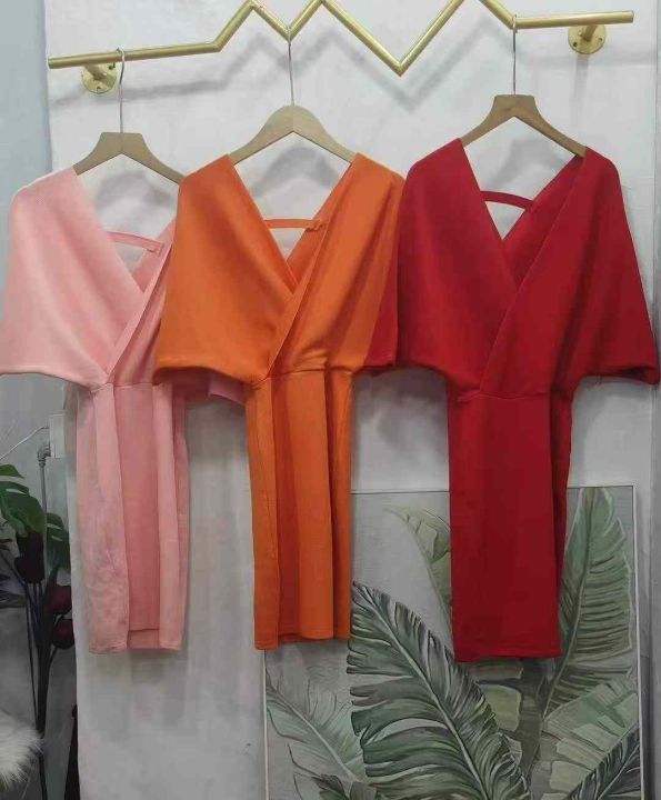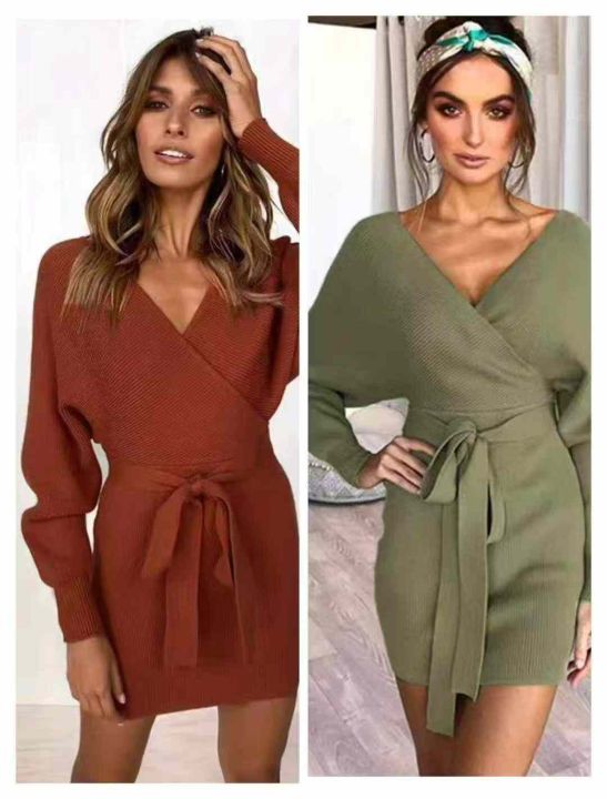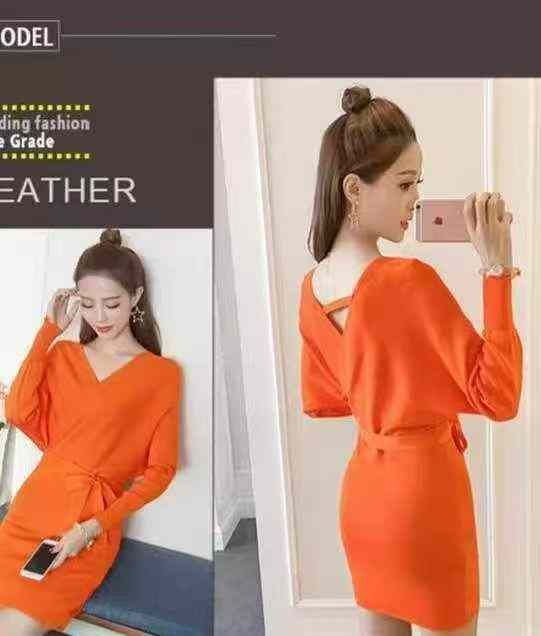 时尚性感女人味V领短袖编蝠袖连衣裙高腰绑带修身显瘦包臀针织毛衣裙,实物短袖,独立包装200件左右,清8.9,分➕1