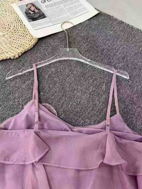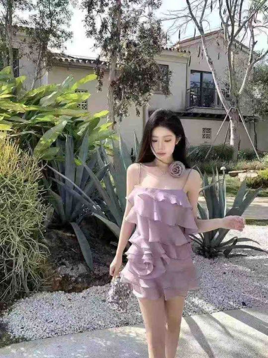 ☕️仙女裙辣妹不规则荷叶边吊带连衣裙短款花朵纯欲海...